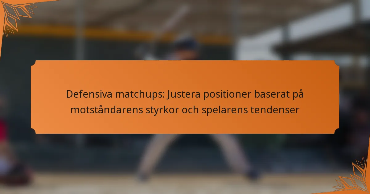 Defensiva matchups involverar att para ihop specifika försvarare mot motståndare baserat på deras färdigheter och tendenser. Denna strategi syftar till att neutralisera de offensiva hot som motståndaren utgör, vilket ökar sannolikheten för framgångsrika defensiva spel. Tränare analyserar spelarstatistik, fysiska egenskaper och tidigare prestationer för att bestämma de bästa matchups.